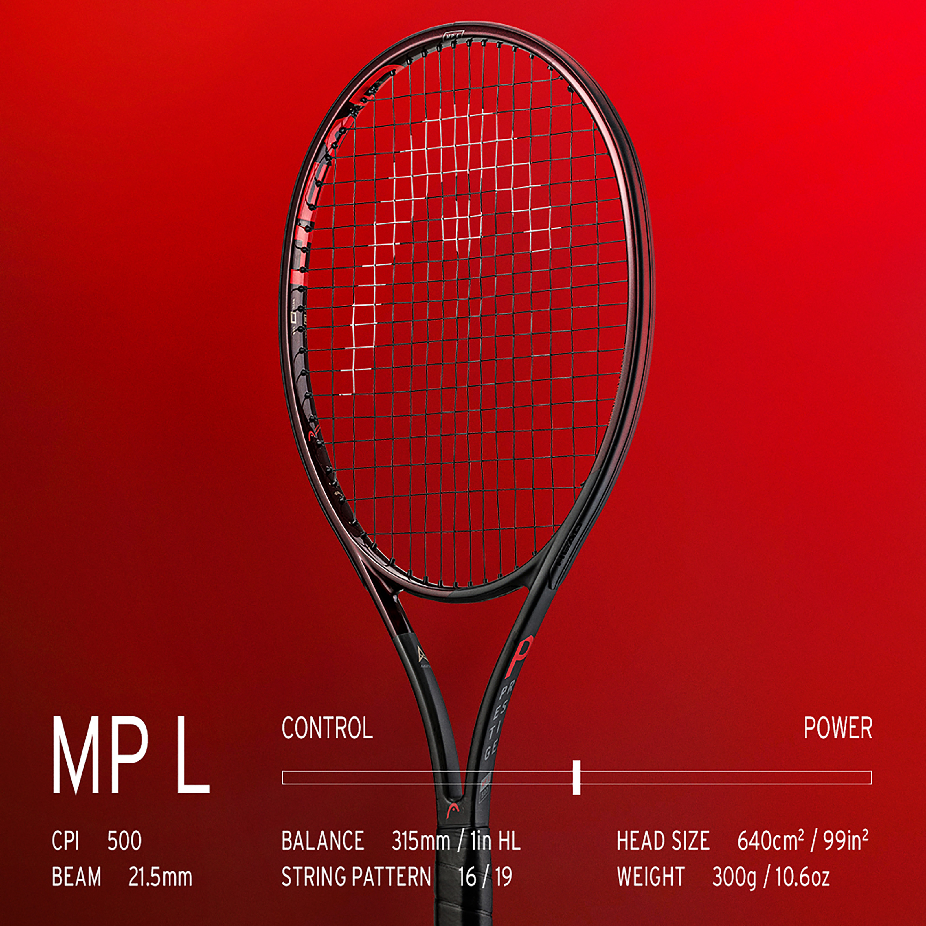 Der Schläger hat ein neues und sehr markantes, durchsichtiges Carbon-Element, das jedes Mal ein wenig anders ist, und dem Schläger sein einzigartiges Aussehen verleiht. Als Teil eines Design-Updates, das von den PRESTIGE-Rahmen aus den 1980er Jahren inspiriert ist, hat der PRESTIGE MP L eine durchsichtige Bordeaux-Farbe, die zu seiner Premium-Ästhetik beiträgt.