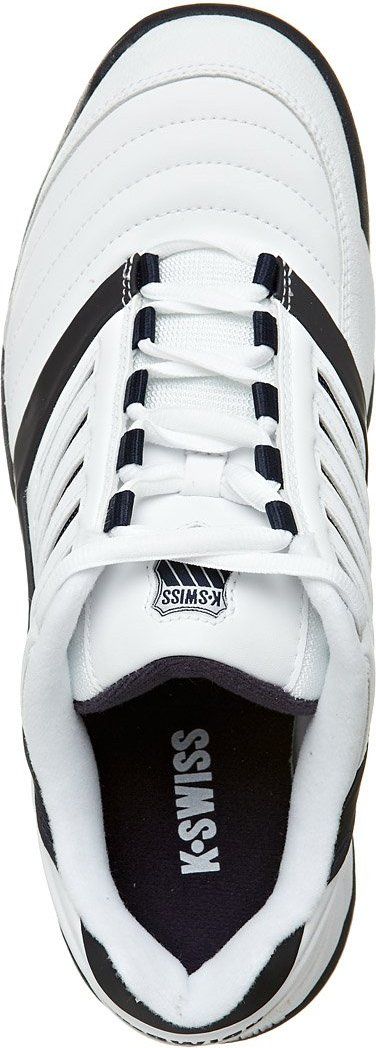 mit glatter Hallensohle wurde für Sportler entworfen, die Sicherheit, Stabilität, eine weiche Polsterung und Schutz suchen. Eine Torsionsplatte für erhöhte Fußstabilität und die patentierte Shock Spring® Dämpfungstechnologie im Fersen - und Vorderfußbereich zeichnen den Surpass Carpet aus. Die verstärkte Schuhzunge sorgt für weiteren Komfort und Dämpfung in dem Schuh. Die verstärkte Vorderkappe bietet vor allem auf Teppichbelägen eine erhöhte Haltbarkeit. Farbe: weiß mit navy. Optimal geeignet für alle Teppichböden ohne eingestreutes Granulat.